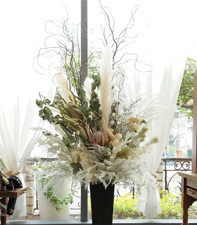 ドライフラワーの持つ繊細な美しさと温もりが、訪れる人の記憶に残る上質な空間を創り出します