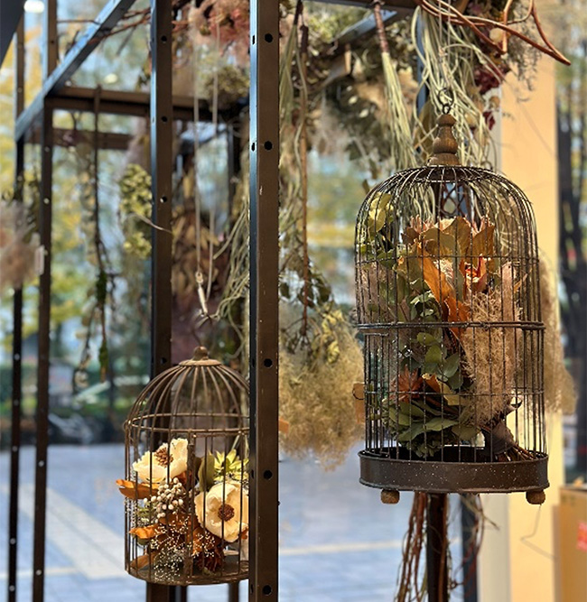 自然の風合いを活かしたドライフラワーの大型ディスプレイは、空間に圧倒的な存在感と癒しをもたらします。季節感や物語性を取り入れた演出で、店舗やイベント空間を唯一無二のアート空間に仕上げます。。